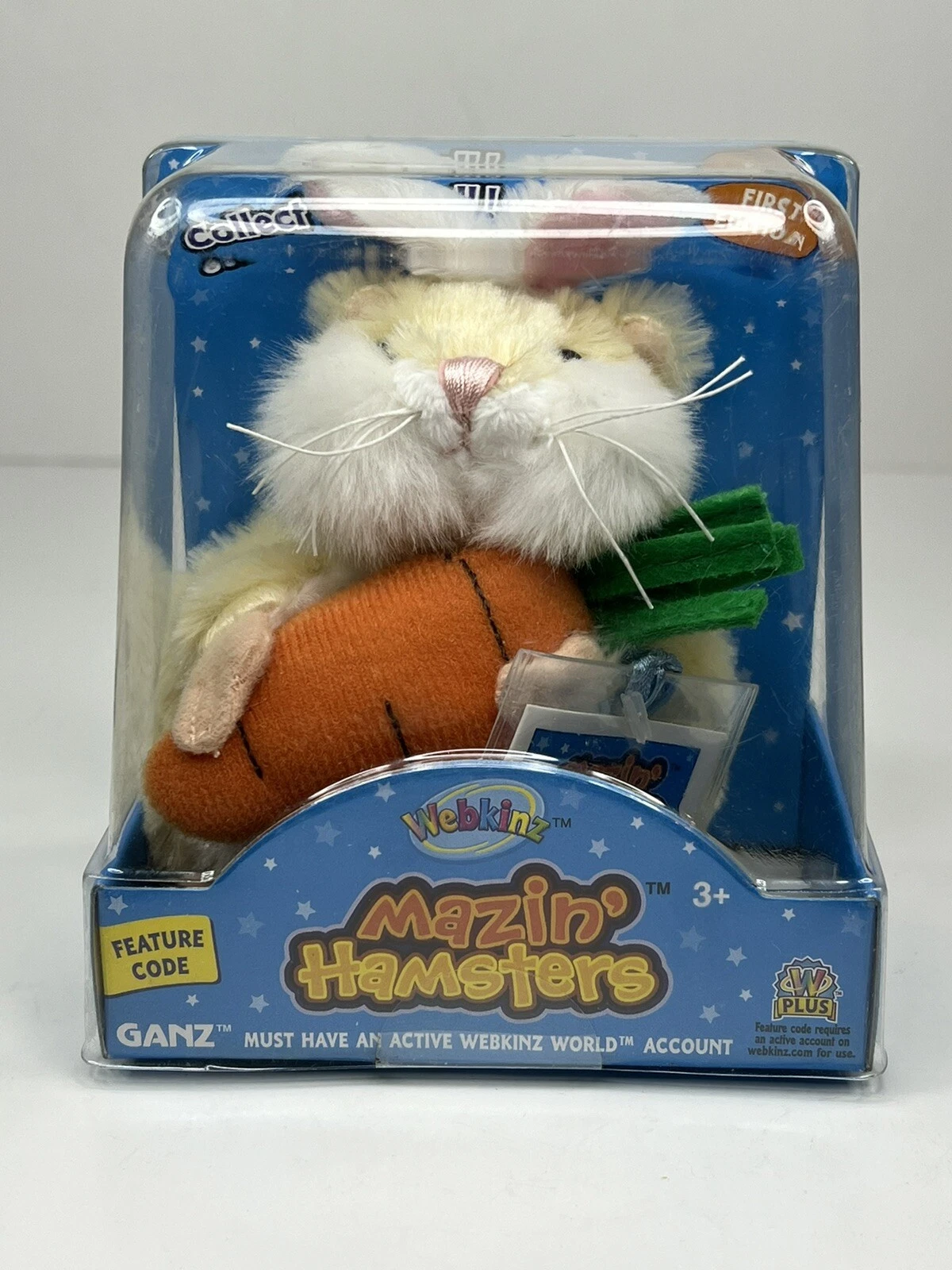 “Mazin’ Hamsters Carrots” refers to a specific character from the Ganz Webkinz Mazin’ Hamsters toy line, a small plush hamster themed for Easter, often sold as a collectible with a digital code to play the online Mazin’ Hamsters game, where hamsters collect items like carrots. While real hamsters can eat carrots in moderation as a treat (cut small), the “Carrots” plush is a toy, and the game involves collecting digital carrots for your hamster.